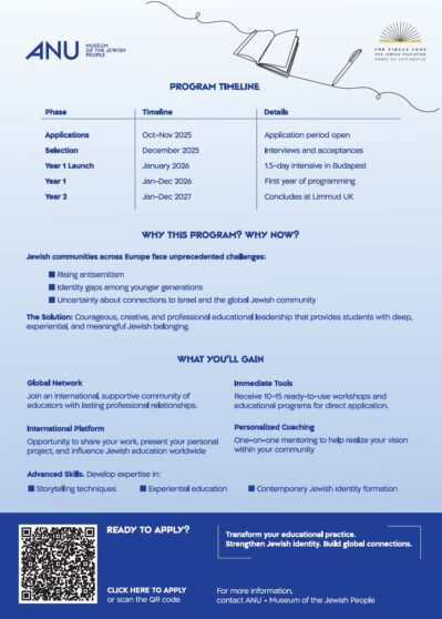 The ANU – Museum of the Jewish People is now accepting applications for the Identity Works Fellowship, which is specifically designed for European Jewish educators.